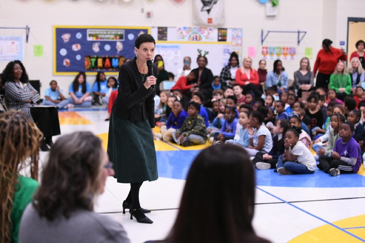Croft Community School | Charlotte, NC | Dec 18, 2024Stephanie Bishop, vice president of the Milken Educator Awards and a 2001 Virginia Milken Educator, tells the assembly that teachers deserve the same kind of recognition and celebration as actors, musicians and top athletes. Every year the Milken Educator Awards team travels around the country honoring outstanding educators. And this year, one of those star educators is right here at Croft Community School!