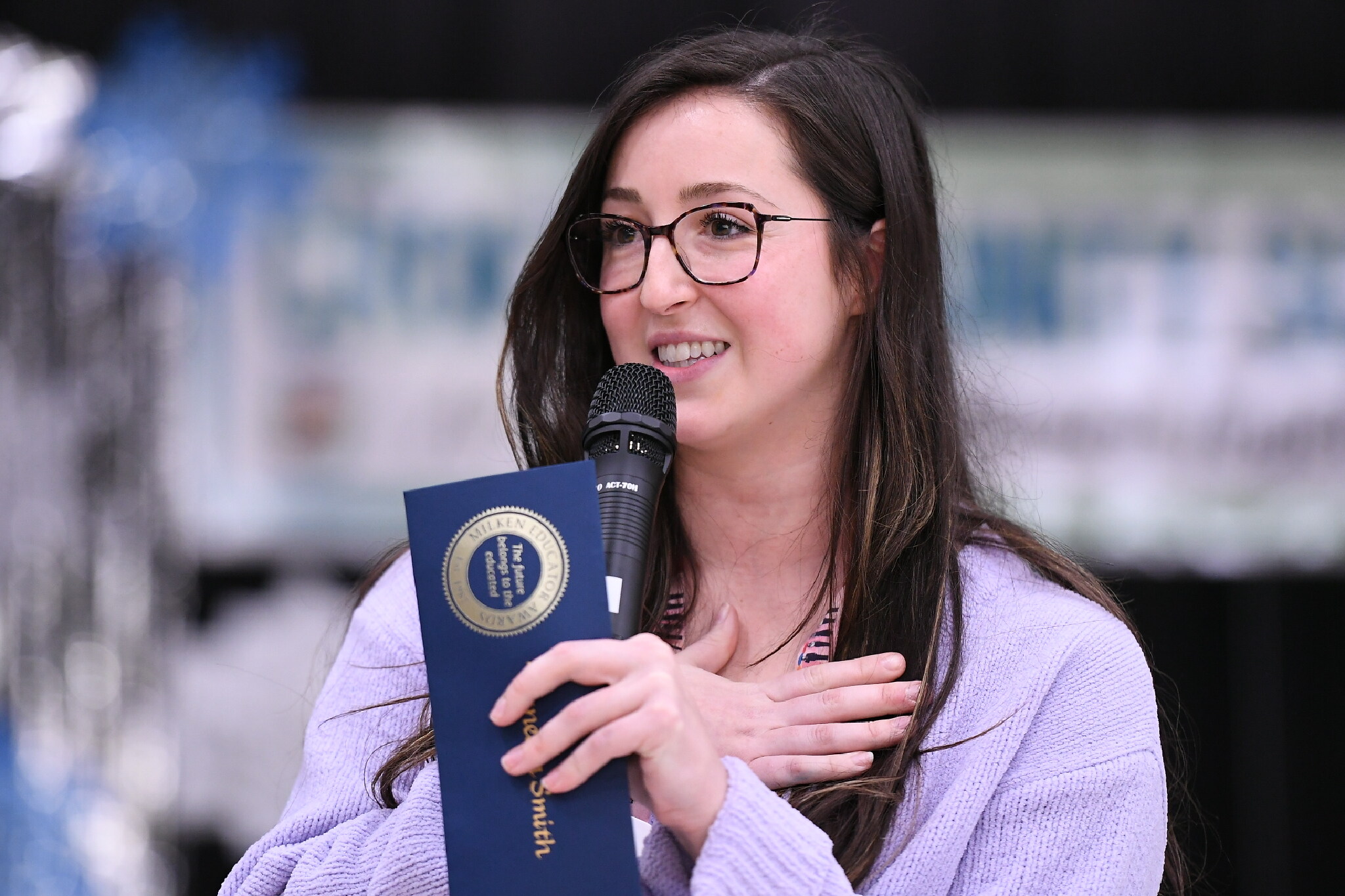 It's first grade teacher Vanessa Smith's turn to address the students, colleagues, dignitaries and media who just witnessed her Milken Educator Award surprise. "This is so humbling, this is definitely a shock," she says. "I definitely wouldn't be here today without my class and former students."