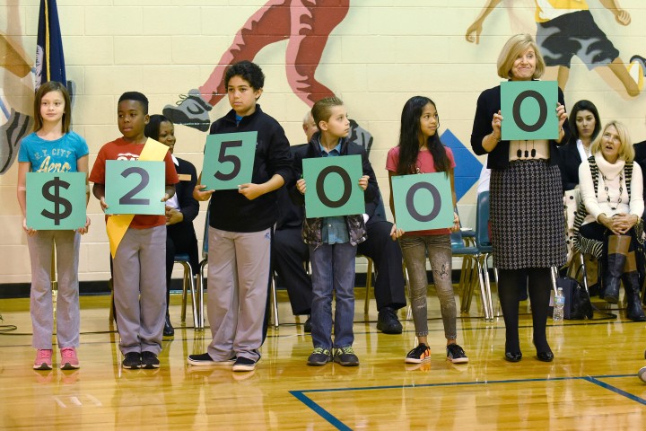 Nursery Road Elementary School | Columbia, SC | Dec 06, 2016How much is the cash prize that goes with the Milken Educator Award? Nursery Road student volunteers hold up cards representing the amount of the Award, one digit at a time. South Carolina Superintendent of Education Molly Spearman holds up the final zero, bringing the total to a staggering $25,000!