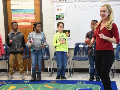 Nursery Road Elementary School | Columbia, SC | Dec 06, 2016Spanish teacher Vanessa Torres leads third-graders in a Spanish language song and dance. Torres believes in teaching through immersion: When she meets her students in the halls, they greet each other and converse in Spanish. At the end of the year, Torres takes her students to a local Mexican restaurant so they can practice their language skills in a real-world setting.